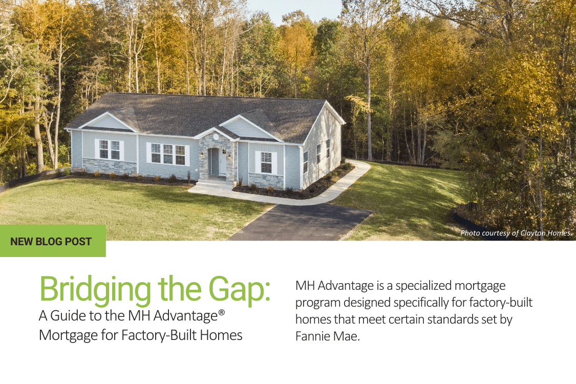 MH Advantage is a specialized mortgage program designed specifically for factory-built homes that meet certain standards set by Fannie Mae. These homes have features typically found in site-built homes, including higher-pitched roofs, attached garages, and upgraded exteriors and interiors. The program offers a competitive mortgage option, which is available for both new and existing homes that qualify.