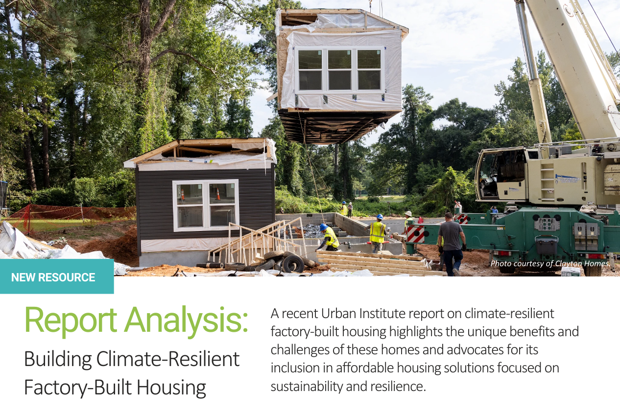 A recent Urban Institute report on climate-resilient factory-built housing highlights the unique benefits and challenges of these homes and advocates for its inclusion in affordable housing solutions focused on sustainability and resilience.