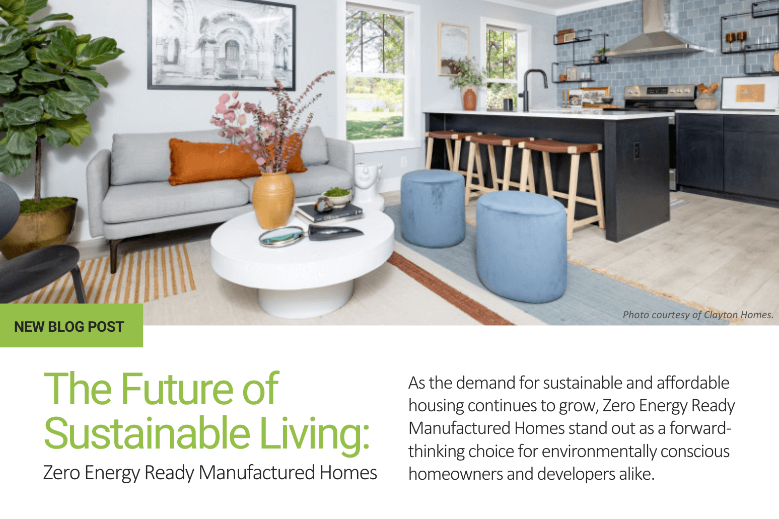 The ongoing climate crisis and increasing power costs are leading more homeowners to integrate sustainable features and practices into their homes and daily routines. This trend presents a great opportunity for Zero Energy Ready Manufactured Homes (ZERMH). These homes are designed to be affordable, highly energy-efficient and can often generate as much energy as they consume when combined with renewable energy sources such as solar panels.